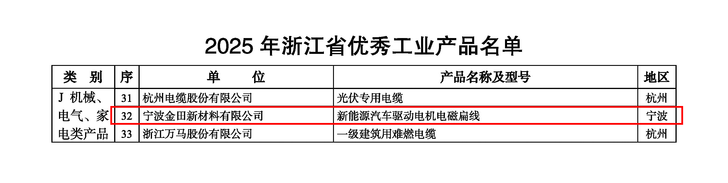 近日,省優(yōu)秀工業(yè)產(chǎn)品評(píng)選委員會(huì)公布了“2025年浙江省優(yōu)秀工業(yè)產(chǎn)品”名單,寧波新材料公司生產(chǎn)的“新能源汽車驅(qū)動(dòng)電機(jī)電磁扁線”成功入選。
